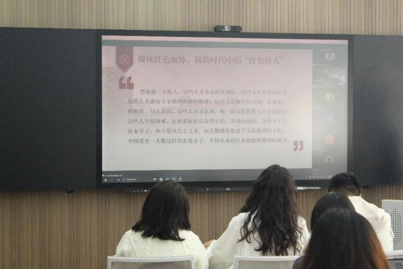随后,本科生传媒第二党支部与硕士生教育学党支部于升华楼806多媒体教室开展了集体理论学习,五位来自不同高校的领学人通过腾讯会议的方式,从党的十九大以来习近平总书记考察国内高校期间的重要讲话精神出发,重点带领全体同志学习了习近平总书记关于教育的重要论述。