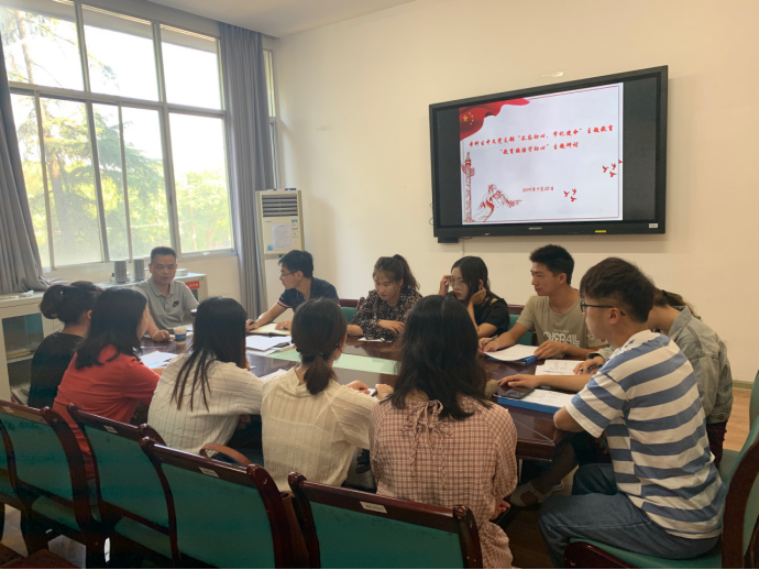 9月22日上午,文新院本科生中文党支部于文法楼234会议室召开“不忘初心,牢记使命”主题教育“教育报国守初心”主题研讨暨“忆往昔,看今朝,奋斗新时代”献礼国庆主题文艺表演。公司党委书记罗军飞同志出席,支部全体党员、各团支部代表参加会议。