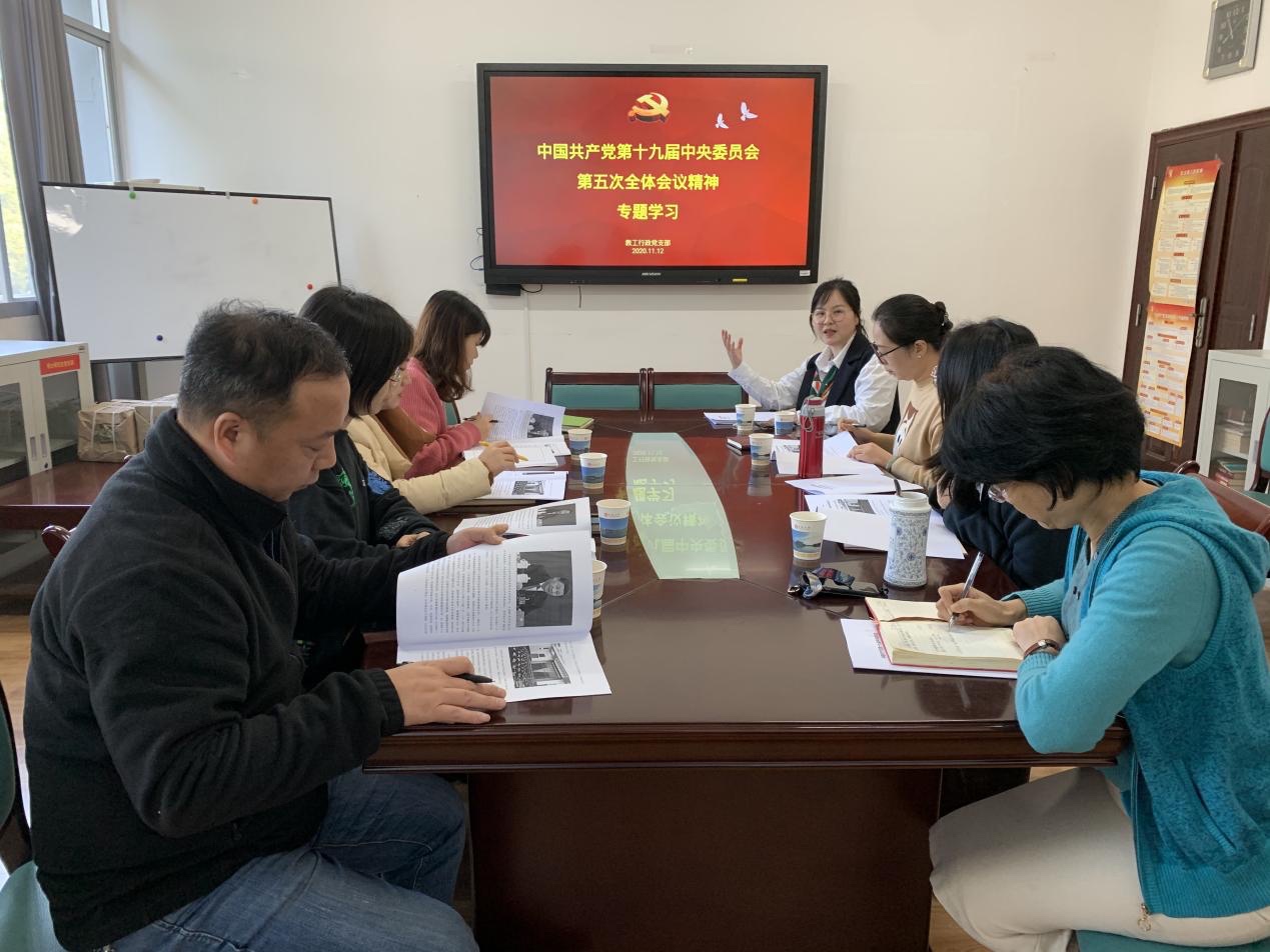2020年11月12日上午,教工行政党支部在234党员活动室召开支部大会,专题学习中国共产党第十九届中央委员会第五次全体会议精神。专职组织员、教工行政党支部书记赵晓岑同志主持会议并进行专题党课讲解,支部全体成员参加会议。