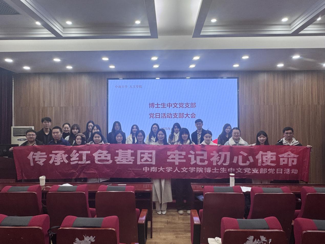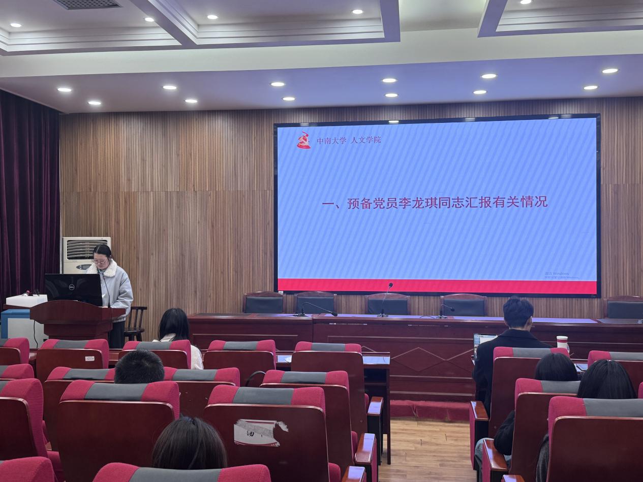 2025年12月12日,博士生中文党支部在文法楼329会议室召开预备党员转正大会与主题党日活动学习活动。会议由支部纪检委员谢泓玥同志主持,支部书记翟鹿同志参会并发言。