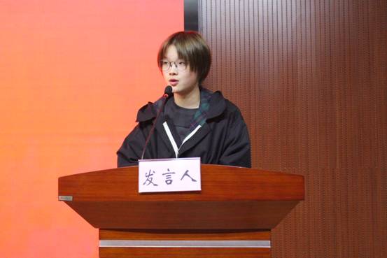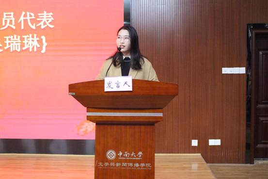 典礼在嘹亮的国歌声中拉开序幕。文新院数版1702班吴瑞琳同学作为入党积极分子代表发言。吴瑞琳讲述自己的学习经历,重温了自己是如何对共产党建立认识并逐步坚定自己追求党组织、加入党组织的决心的。她认为,每一个入党积极分子都要端正自己的思想,树立无产阶级的世界观、人生观、价值观,树立全心全意为人民服务的信念,才能从实际行动中表现出来。