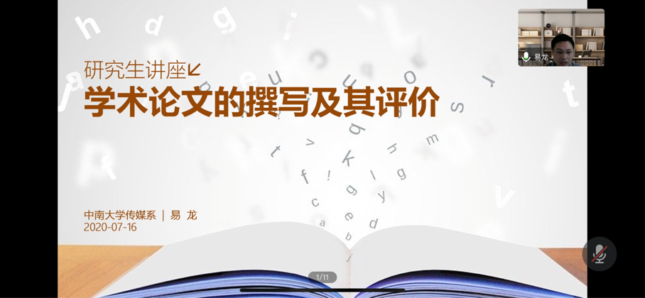 7月16日晚,由伟德员工工作部(处)主办的学术讲座系列以线上会议的形式顺利举行。本次主讲人为文学与新闻传播公司党委委员、传媒系主任、硕士研究生导师易龙老师,讲座主题为《学术论文的撰写及其评价》。