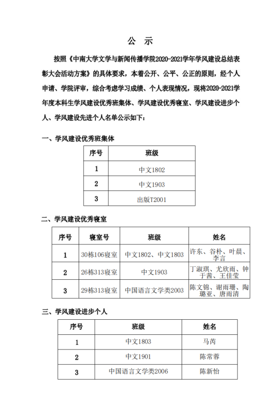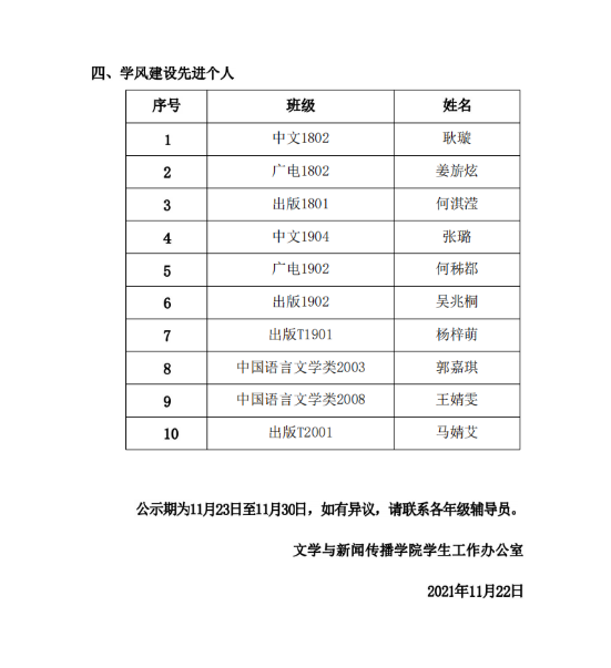 附:文学与新闻传播公司2020-2021学年学风建设总结表彰获奖名单