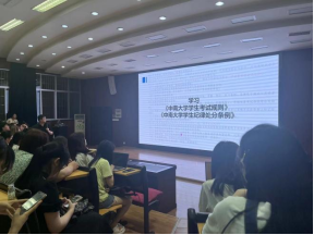 大会开始,易老师首先传达了校员工事务办公室关于关于做好2022年春季学期期末考试诚信应考工作的通知的精神,期末考试临近,为弘扬校风、涵养学风、端正考风,应切实做好期末考试诚信教育,提高同学们诚信应考的意识,杜绝考试舞弊现象,同时做好考前学业辅导,鼓励同学们保持积极心态迎考。
