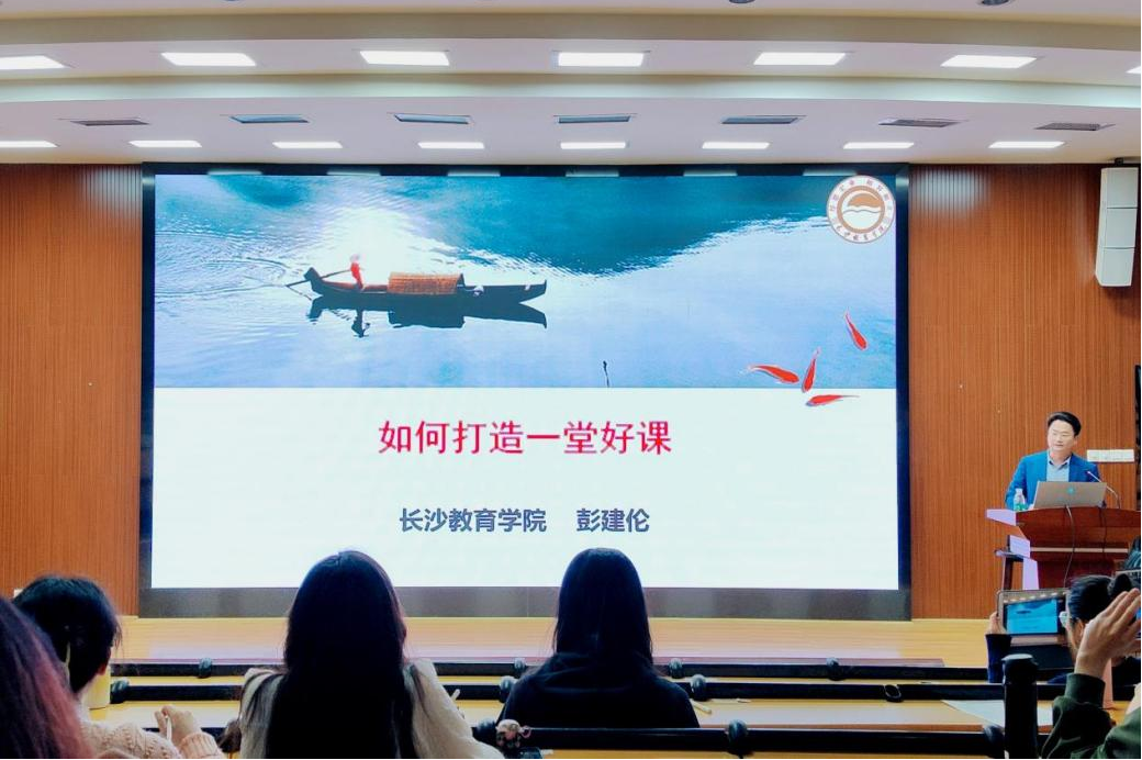 来自长沙教育公司的彭建伦老师为同学们带来以“如何打造一堂好课”为主题的讲座。彭老师从自身教学经历出发,讲述自己从教以来从“实践者”到“探索者”,再到“分享者”的身份转变。彭老师从以下几个方面来为大家讲授如何上一堂“好课”。