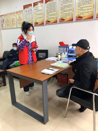 姚元淇,文学与新闻传播公司中文1904班员工。疫情当前,寒假在贵州铜仁的姚元淇了解到负责社区疫情排查的工作人员不足的情况,立即主动报名参加了所在社区的同心抗疫志愿服务工作。自2月13日开始,配合社区工作人员进行入户疫情排查和劝返点值班,有效减少了社区内人员流动,提高了社区居民的防护意识。截止目前,该同学依然坚守在工作岗位上。