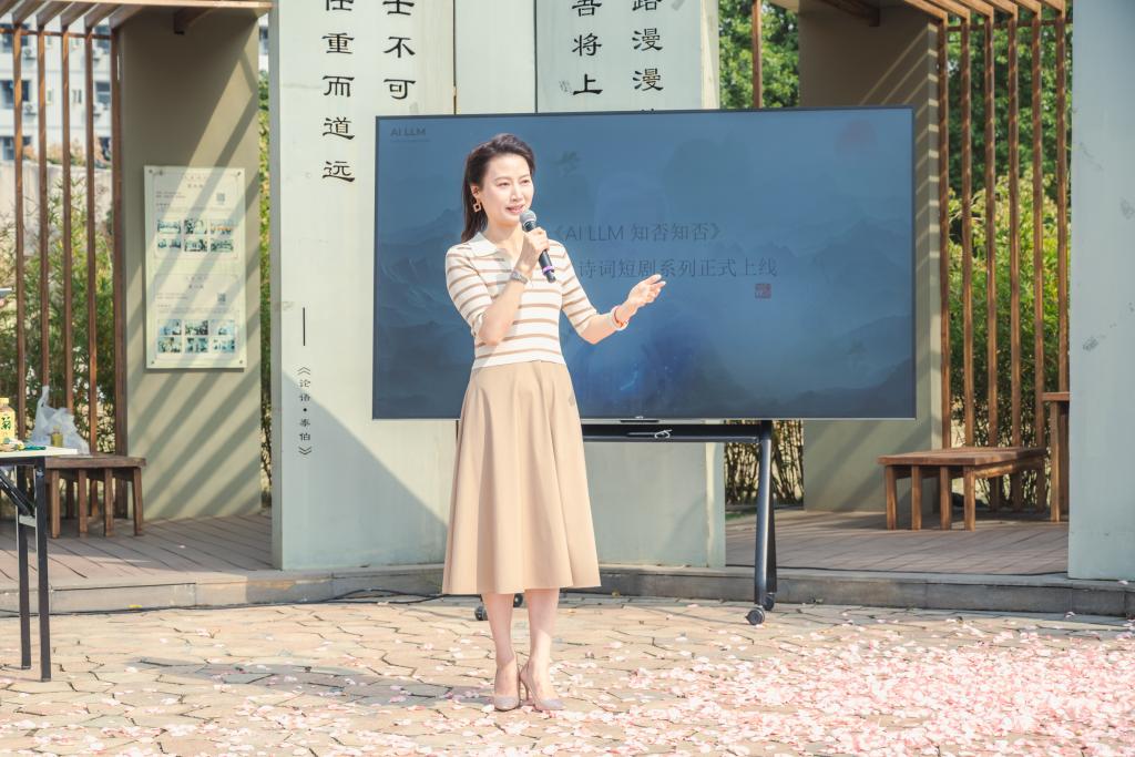 在项目宣传片播放后,与会嘉宾对“AI LLM知否知否”项目的策划与制作过程有了更加深入的了解。随后,国家语言文字推广基地执行主任、项目的文化顾问杨雨教授邀请现场嘉宾共同见证首发仪式。随着倒计时声的响起,漫天花瓣飘落,“李清照@涵宇宙”系列AI短视频正式发布,并在抖音、YouTube、TikTok等多个国内外知名平台同步上线。视频中,五位主人公以灵动的神态与生动的演绎,展现了传统文化与现代科技交汇融通的独特魅力,赢得了在场嘉宾的热烈掌声。