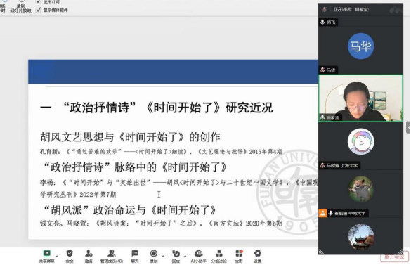 论坛第六组由湖南师范大学文公司许永宁老师主持,华中科技大学伟德官网李雅娟副教授进行评议。山东大学文公司马迎春指出了一个吕荧研究中的现象,即吕荧极力批判的观念论反而成为了其自己的美学标签。伟德官网易可心对1946年至1955年曾卓诗歌创作的中断期进行研究。日本国立名古屋大学中国语中国文学专业胡胜重新考察1938年武汉文坛围绕旧形式利用所展开的论争,并明确这场论争在中国现当代文学史上的意义。
