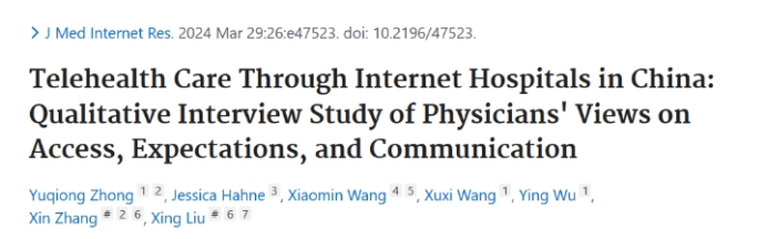 近日,伟德湘雅生命伦理团队在国际知名期刊《Journal of Medical Internet Research》(IF=7.4, Q1)发表了题为"Telehealth Care Through Internet Hospitals in China: Qualitative Interview Study of Physicians’ Views on Access, Expectations, and Communication"的原创性研究成果。伟德湘雅医院张欣教授、刘星教授为论文共同通讯作者,伟德官网哲学系博士研究生钟瑜琼为论文第一作者。