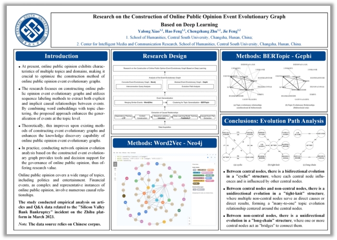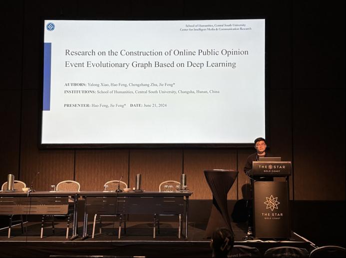 2024年6月20日至24日,第74届国际传播学会年会(74th Annual International Communication Association Conference,ICA 2024)在澳大利亚黄金海岸(Gold Coast)举行。公司智媒传播研究中心团队撰写的论文被大会“Information Systems”分论坛录用并作报告。论文标题:Research on the Construction of Online Public Opinion Event Evolutionary Graph Based on Deep Learning,作者:肖亚龙、冯皓(传媒系硕士研究生)、朱承璋、冯杰(通信作者)。