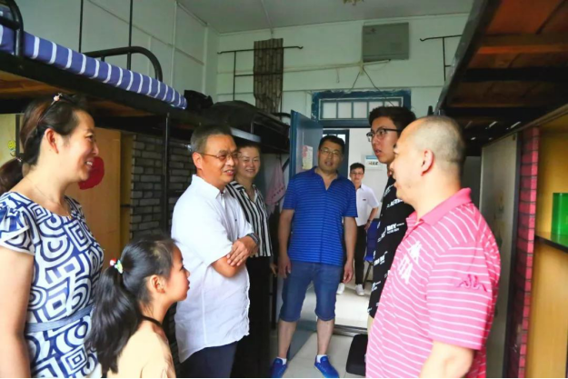 随后,领导和老师们分别走进26栋、29栋及11栋,走访各个新生宿舍,仔细考察了宿舍环境与安全情况,还与员工及家长亲切交流了学习、生活及开学准备情况,并仔细询问员工的日常生活。同时,领导和老师们还分享了自己的建议与心得,送去了来自公司的关心与问候。员工们则表示自己也将会在新学期加倍努力,积极迎接新生活。