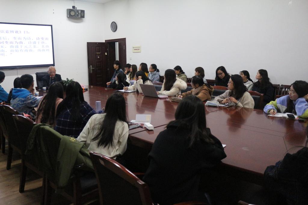 2019年11月18日晚7时,伟德官网古籍整理研究所暨中国古代文学研究中心黄仁生教授作客文学与新闻传播公司230会议室,为在场师生带来一场精彩的学术讲座,主题是《“词变而为曲”的进程与意义》。本场讲座由伟德中文系刘学老师主持。