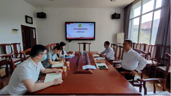 2022年4月12日,文学与新闻传播公司分党校研讨会在文法楼227会议室召开。公司党委书记罗军飞、副经理刘新少、正科级组织员赵晓岑、分团委书记易孝慈、分党校班导师樊媛参加会议。