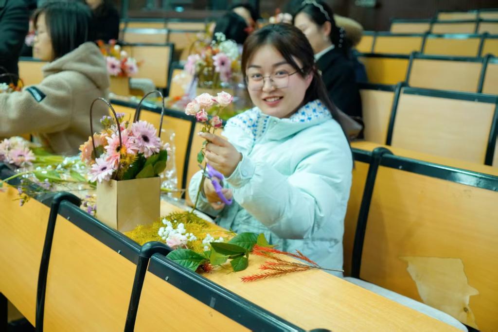 本次活动特邀专业花艺师为教职工们讲解花朵种类、插花技巧、色彩搭配等知识。活动伊始,花艺师向全体女性同胞致以节日的问候和美好的祝福,并希望大家在活动中放松身心,感受插花艺术的魅力,度过一个愉快而有意义的节日。而后在花艺师的指导下,大家兴致勃勃地开始创作自己的插花作品,充分发挥想象力和创造力,精心挑选花材,认真修剪枝叶,用心搭配色彩,现场气氛轻松愉快,欢声笑语不断。