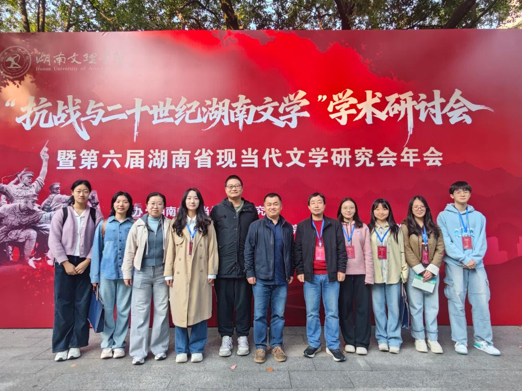 11月15至16日,为纪念中国人民抗日战争暨世界反法西斯战争胜利80周年,由湖南省现当代文学研究会主办,湖南文理公司文史与法学公司、湖南师范大学文公司、《武陵学刊》编辑部及常德市丁玲纪念馆联合承办的“抗战与二十世纪湖南文学”学术研讨会暨第六届湖南省现当代文学研究会年会在湖南常德召开,30余所高校150余名专家学者和研究生参会。湖南省现当代文学研究会副会长、公司易彬教授以及晏杰雄教授,博士后廖伟杰,博士研究生王婧雯、叶家轩,硕士研究生秦毓穗、廖妍、唐瑞璇、肖宇航、曹凡、梁婧茹应邀与会研讨。