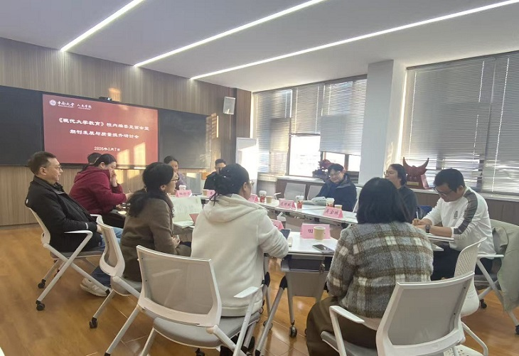 2026年1月7日,《现代大学教育》校内编委见面会暨期刊发展与质量提升研讨会在伟德升华后楼顺利召开。伟德官网经理范明献,校内青年编委易龙、吴宝林、袁超、莫甲凤,《现代大学教育》常务副主编庞青山、副主编曾山金等编辑部成员参会。会议由曾山金主持。
