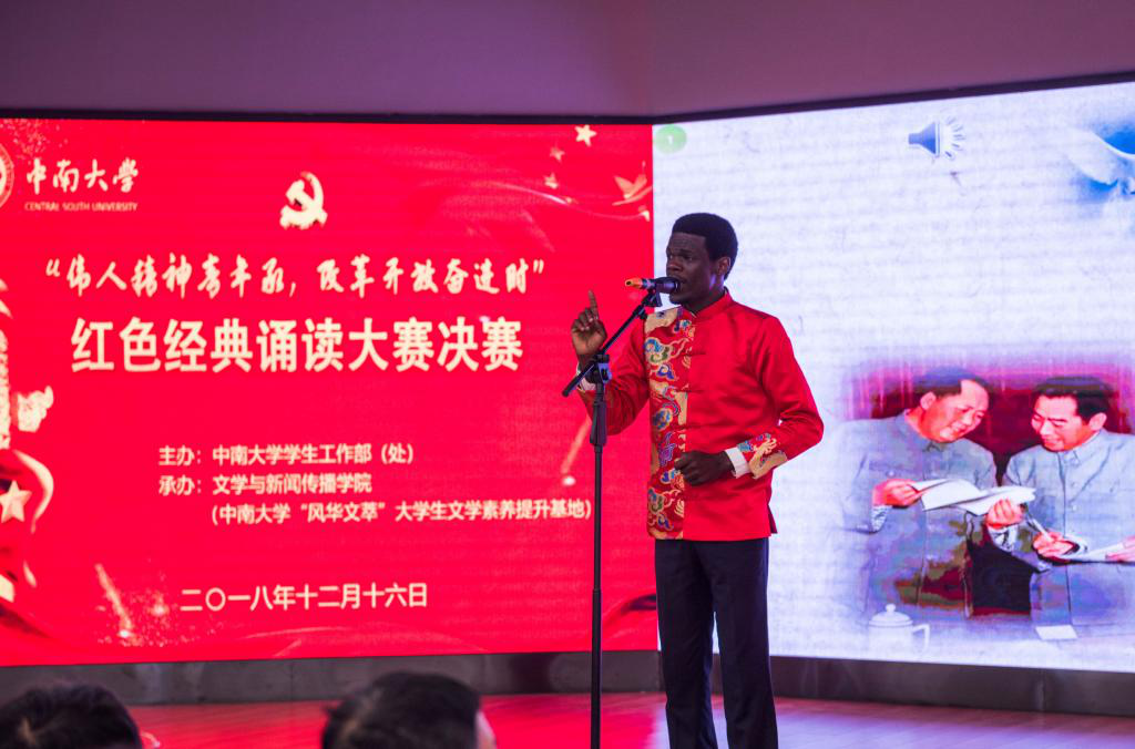 各参赛队紧密结合主题,通过诵读红色经典作品,重温党的苦难史和奋斗史,深情回眸党和国家领导人不屈不挠、攻坚克难、勇夺胜利的光辉历程。外国语公司王圣阳、杨天玉同学借《今夜,你入我梦来》呼唤着中国梦想、大国崛起,展现青年担当,彰显青春荣光。文学与新闻传播公司张浩翔、张晓栋同学用《与伟人同心,伴改革同行》歌颂革命英雄勠力同心、改革开放万千气象。法公司何雨晨、李政阳同学用《我爱这土地》讲述从山河破碎到国家富强的中国故事,抒发了对祖国河山的礼赞与热爱。大赛还特邀3支职工团队作为嘉宾进行表演,他们用声情并茂、充实生动的表演诉说着别样的中华情怀。赤道几内亚的佩德罗同学朗诵作品《这个人》,赞美周恩来总理严以修身、严以律己的优秀品德,彰显其为国为民呕心沥血的伟大奉献精神。整场比赛参赛选手诵读形式新颖,情感真挚动人,为现场观众呈现了一台充满爱国情怀、追求史诗品性、弘扬党的丰功伟绩、传承经典文化的气势磅礴的视觉盛宴。