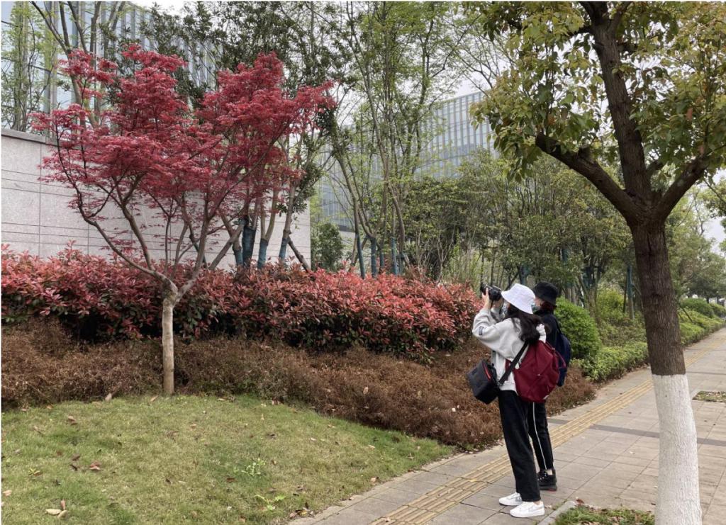 上午8点整,同学们携带相机准时从公司南校区出发。正值春季,道路两侧的花草树木都呈现出生机勃勃之态,同学们一边向目的地进发,一边用相机记录下这春意盎然的景色。吃过午餐并短暂地休息后,同学们继续向目的地前进。