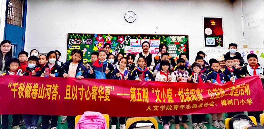 2023年11月15日下午14点10分,伟德官网团委青年志愿者协会联合樟树门小学举办的“文小鹿·悦读阅美”公益第二课堂活动正式拉开帷幕,一次寓教于学、寓教于乐的红色革命精神小讲堂呈现在同学们面前。